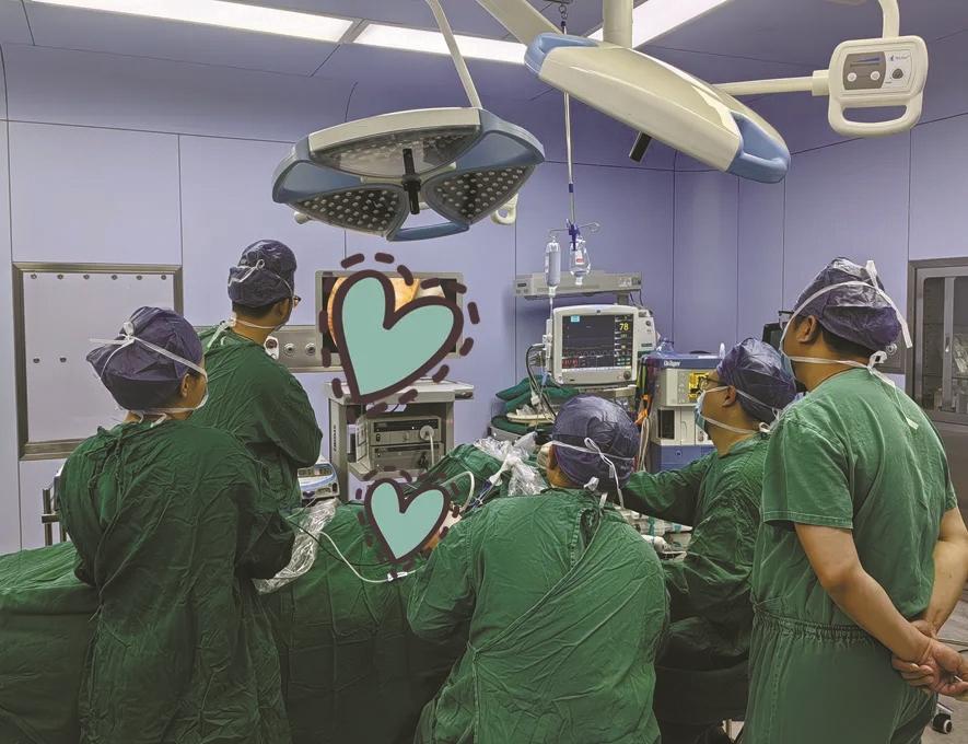 医生正在为患者做腔镜下男性乳腺发育切除术。