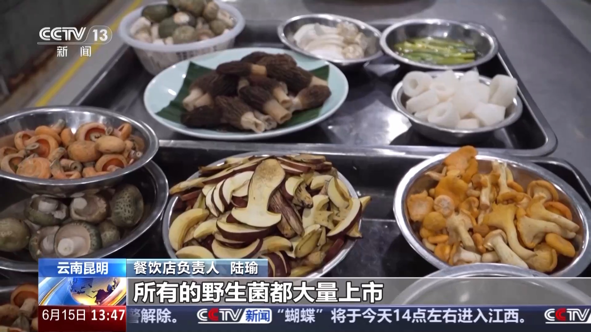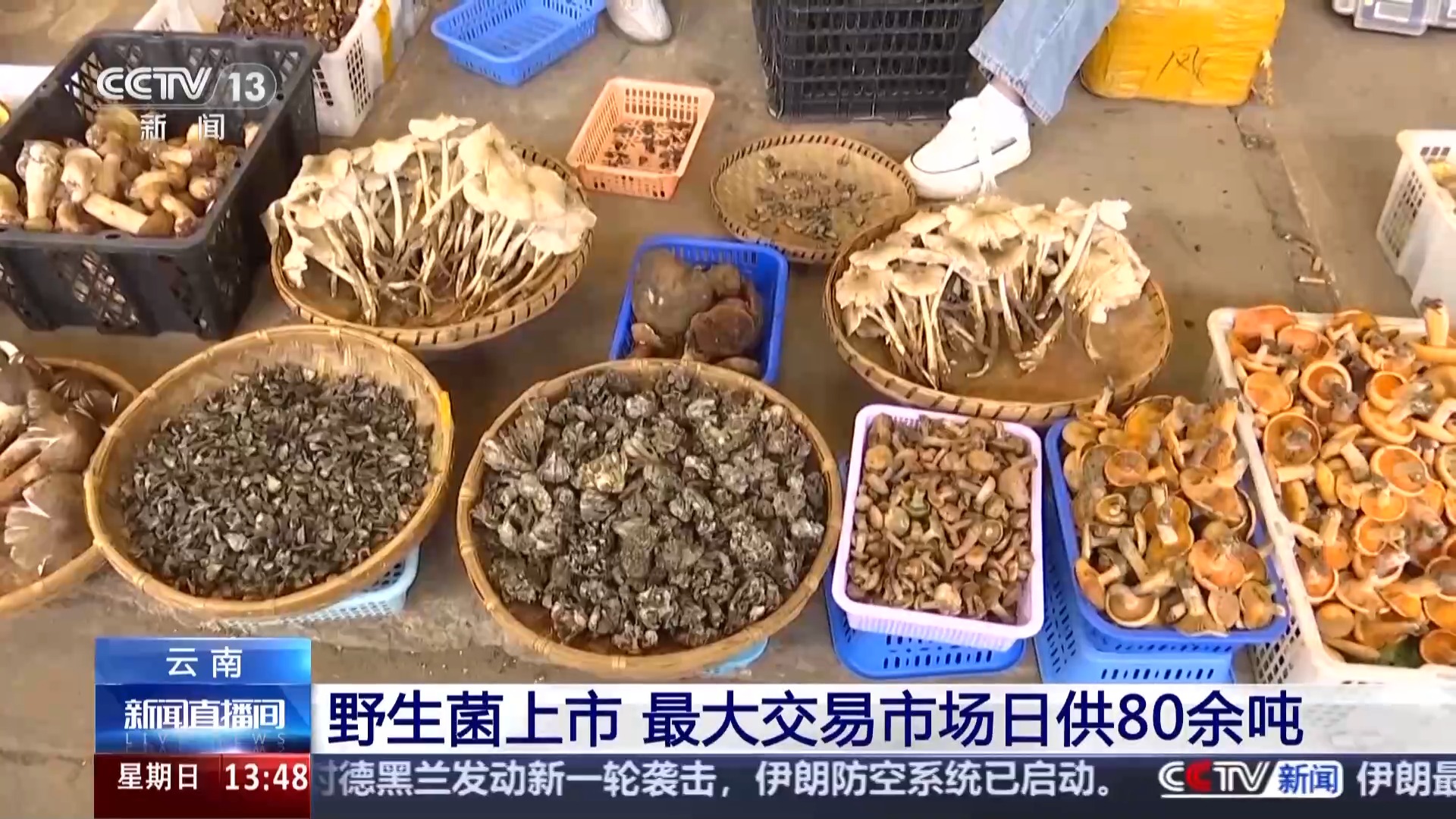 在全国最大的野生菌交易市场——云南木水花野生菌交易中心,记者看到,牛肝菌、鸡枞、松茸、青头菌等热门菌类琳琅满目,吸引了不少本地居民和外地游客。