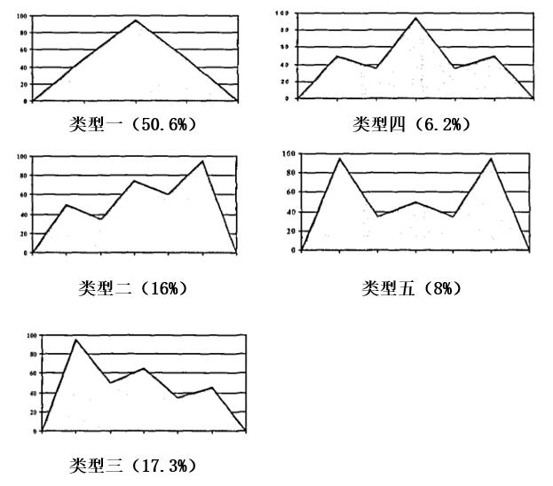结果发现,那些最终被结束了的友谊,常常表现出下图中这5 种轨迹模式(括号内为占比),只有 1.9%不符合任何一种发展模式。