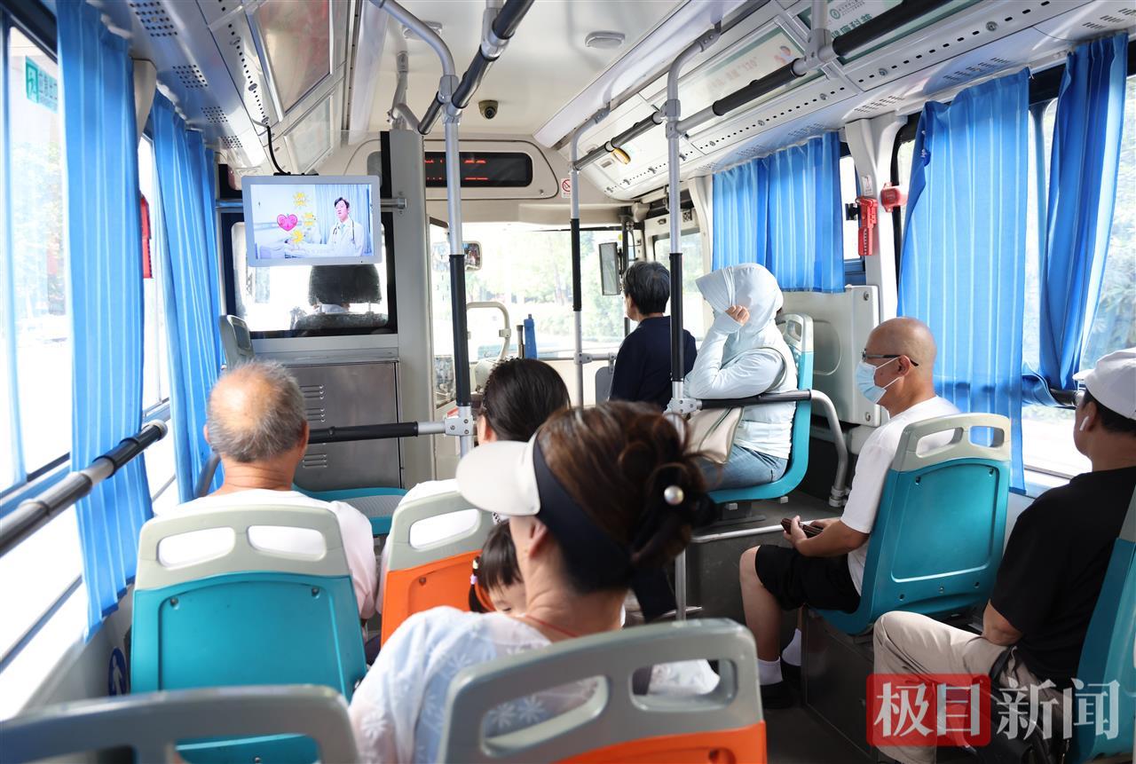 车内设置了科普宣传袋,里面的宣传折页涵盖了高血压、高血脂、糖尿病等慢病以及中医药养生等健康科普,内容详细且浅显易懂;车辆顶部两侧的宣传栏里张贴着如何识别中风、结直肠癌的报警信号、“我为家人学急救”、畅快呼吸远离慢阻肺等健康科普海报;多媒体屏上滚动播放着医院原创的系列科普短视频。车内还有身着“小红褂”的武汉市中心医院志愿者为乘客们分发健康科普折页,解答就医相关咨询。