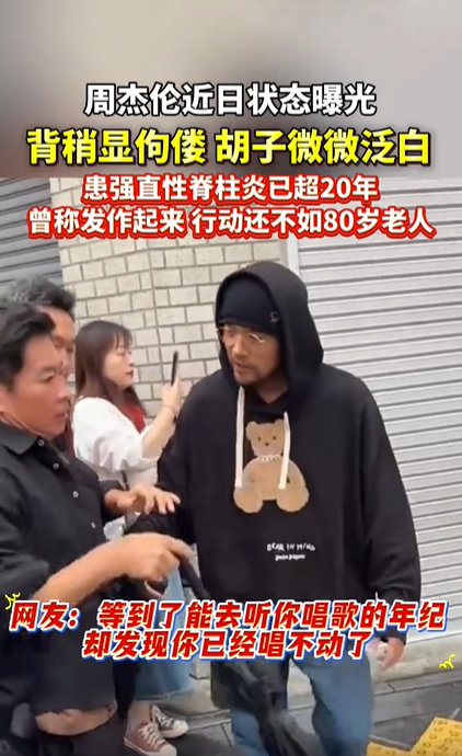 近日,有网友在日本偶遇周杰伦,他身着黑色卫衣,背稍显佝偻。