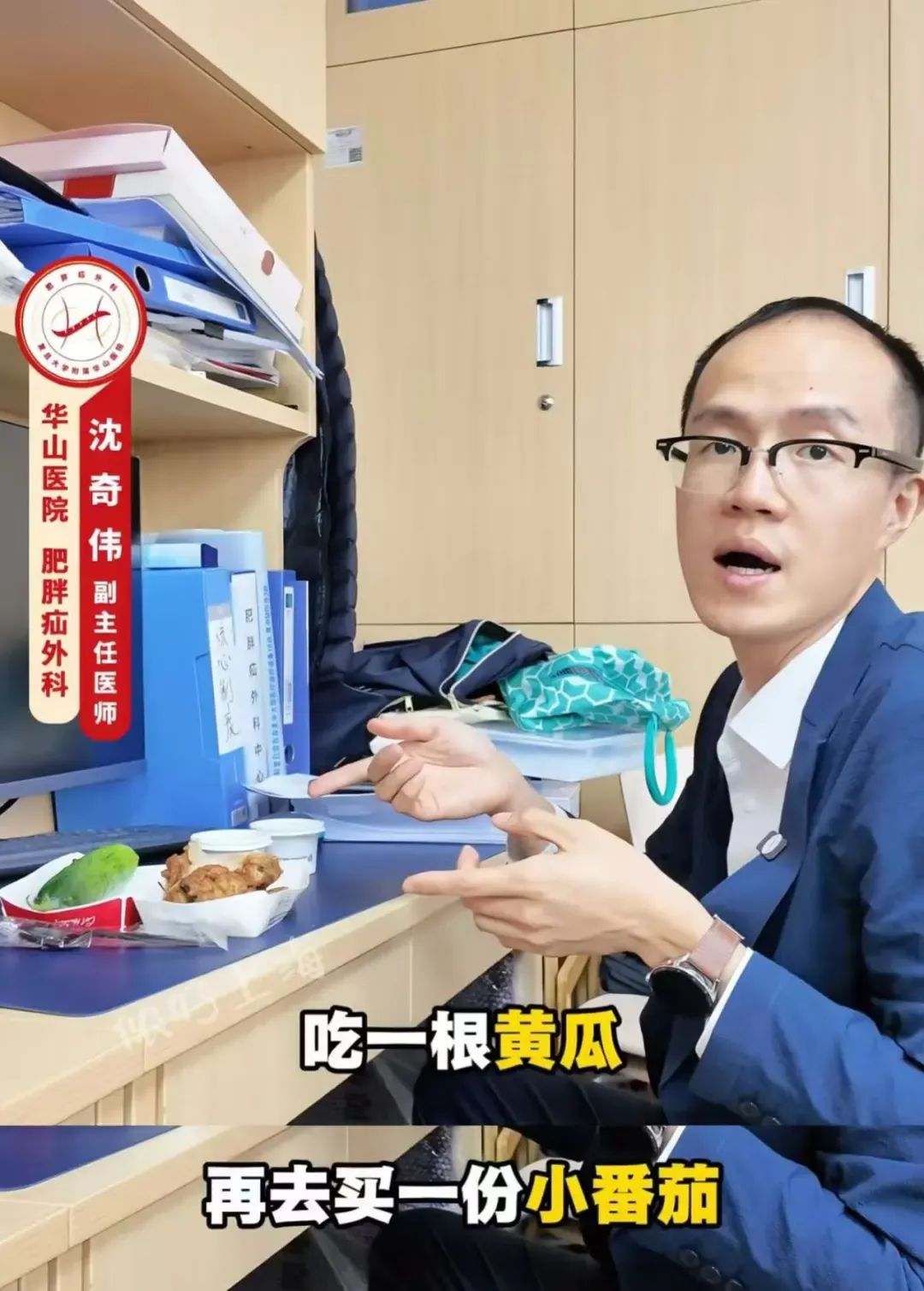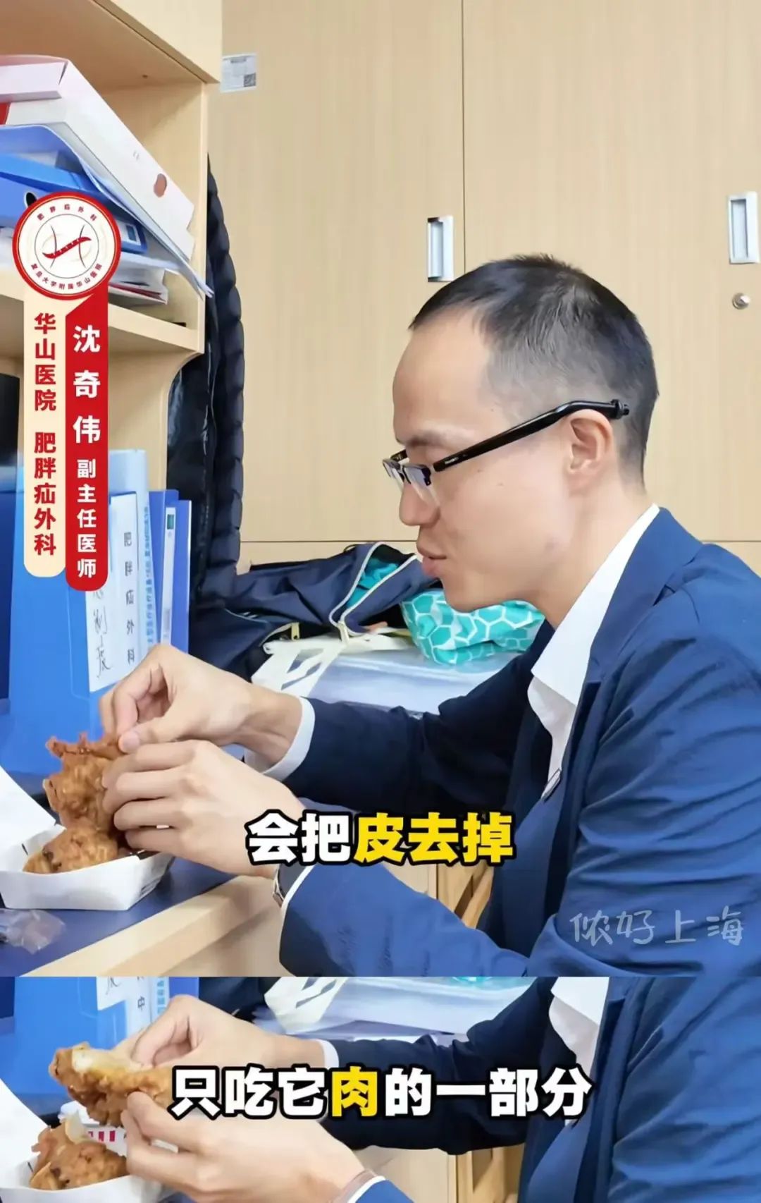 近日,华山医院减肥科副主任医师沈奇伟的午餐晒图,瞬间在社交媒体上炸开了锅——他吃的竟然是肯德基!