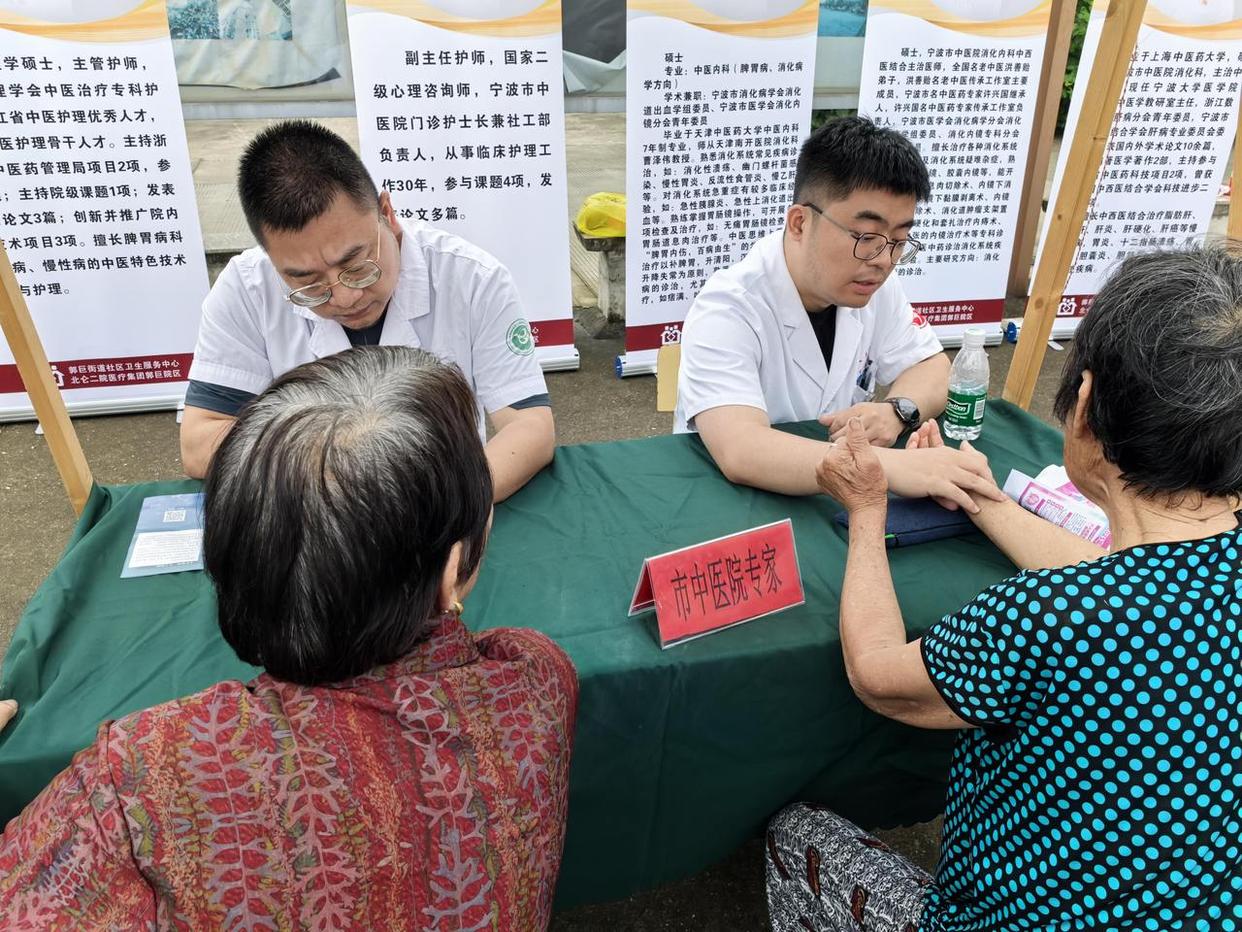 6月24日,“夏季脾胃养生”中医健康义诊活动在宁波市北仑区郭巨街道峰南社区开启。