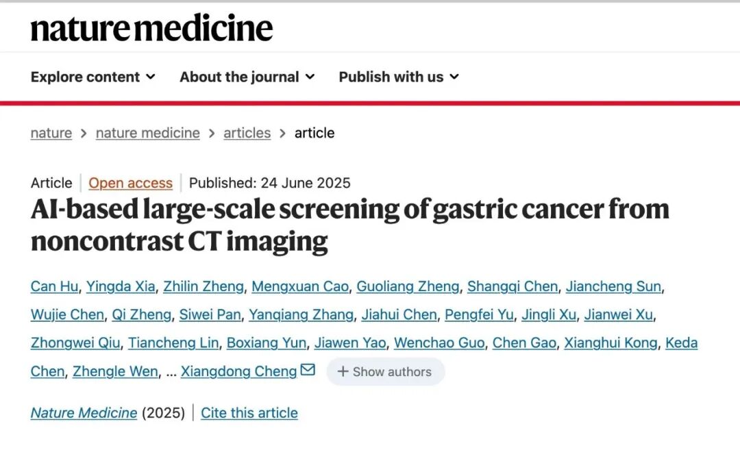 刚刚,浙江省肿瘤医院联合阿里巴巴达摩院召开发布会,发布全球首个胃癌影像筛查AI模型DAMO GRAPE,首次利用平扫CT影像识别早期胃癌病灶,并联合全国20个中心近10万人的大规模临床研究中大幅提升胃癌检出率。相关成果登上国际顶级期刊《自然·医学》(Nature Medicine)。
