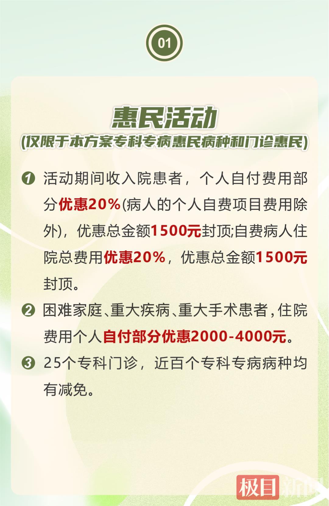 7月1日,2025年武汉市汉口医院“百万惠民”公益行动将正式启动,惠民活动将为期两个月:7月1日至8月31日,住院患者个人自付费用部分优惠20%(患者的个人自费项目费用除外),优惠总金额1500元封顶;自费患者住院总费用优惠20%,优惠总金额1500元封顶;困难家庭患者、重大疾病患者、重大手术患者,住院费用个人自付部分优惠2000-4000元。25个专科门诊、近百个专科专病病种均有减免,为患者提供更优惠、更优质的医疗健康服务,更好地为群众健康保驾护航。