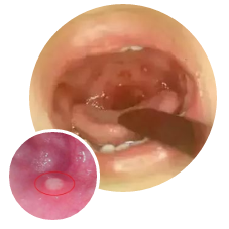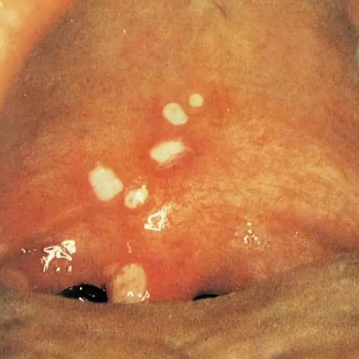 溃疡期(3-4天):低烧或退烧,水疱破溃形成为浅溃疡,因溃疡疼痛出现流口水甚至拒食现象。