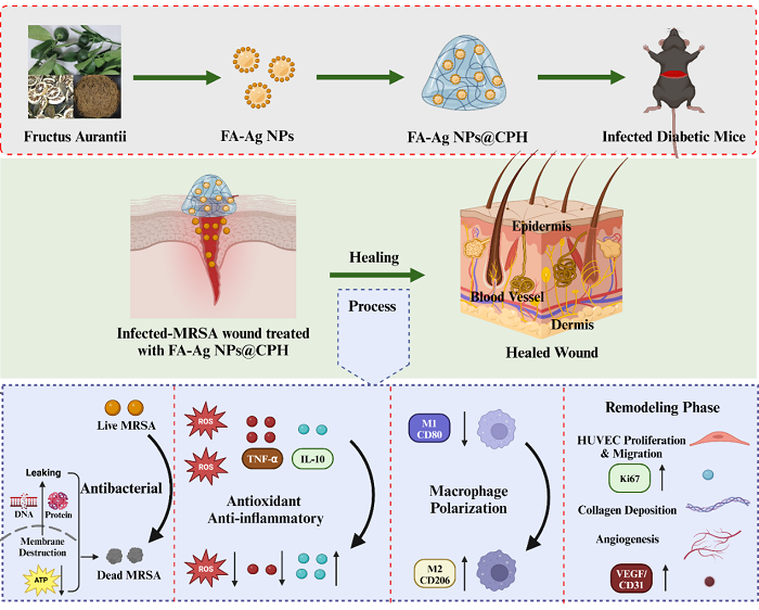 “本项研究揭示了一种协同增效的双重作用机制,即水凝胶载体通过可控缓释纳米银破坏耐甲氧西林金黄色葡萄球菌细胞膜完整性以实现广谱抗菌效能。与此同时,柑橘果胶因其抗氧化抗炎及免疫调节等活性促进成纤维细胞增殖与血管新生,二者协同作用显著加速慢性伤口愈合进程。”栾明宝说。