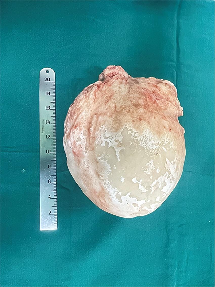 第二阶段:泌尿外科精准手术,完整取出2300g结石并保护膀胱功能。
