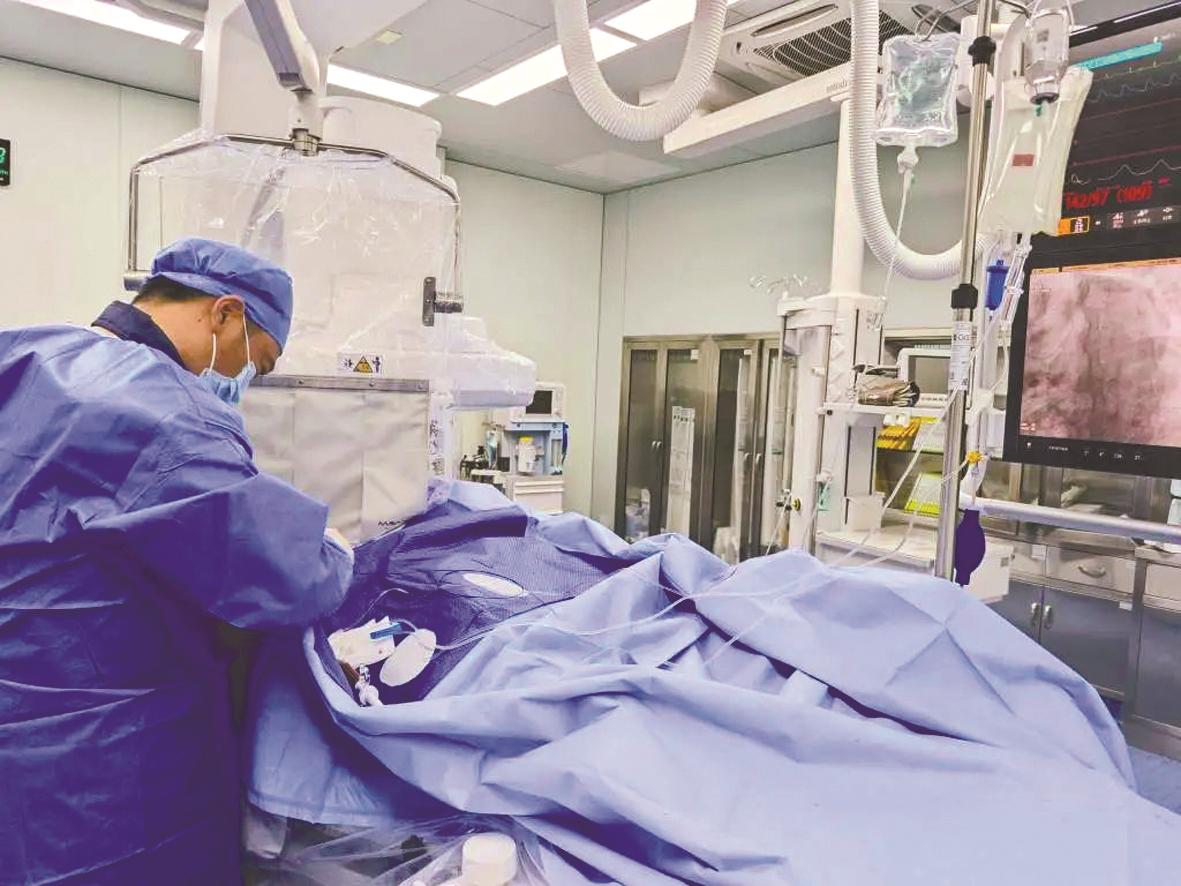 急诊经皮冠状动脉介入治疗(PCI)随即在导管室展开。在血管造影设备的实时引导下,楼善杰精准操作,将指引导管成功送达右冠脉闭塞部位,通过血栓抽吸导管对目标部位进行反复抽吸。操作完成后,堵塞血管的血流成功恢复,手术关键步骤顺利完成。目前,小王已顺利出院。