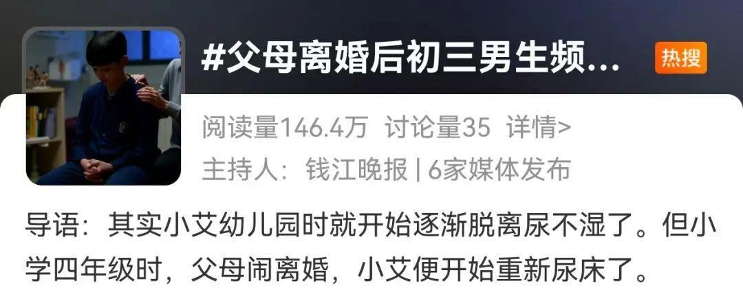 7月9日晚,“父母离婚后初三男生频繁尿床”的新闻,冲上热搜。