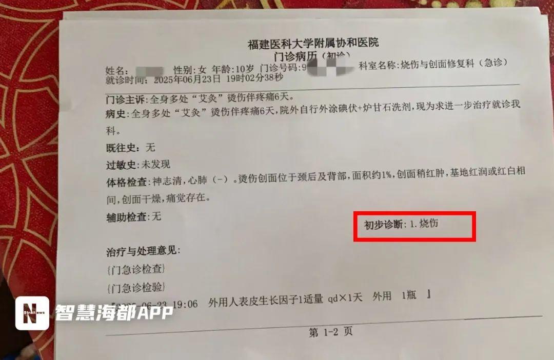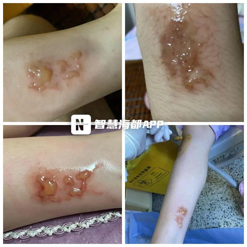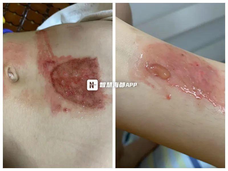 屈先生表示,疗程第四天,孩子皮肤出现水疱,第五天水疱溃烂。“第六天医师还是继续给孩子贴,贴完之后孩子直喊疼,6月23日我带女儿去医院就诊,6月27日带儿子就诊。”