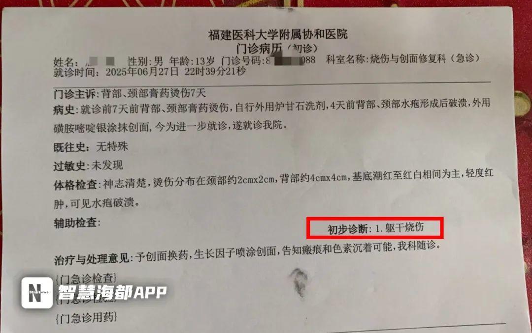 6月27日,儿子初步诊断结果为躯干烧伤。
