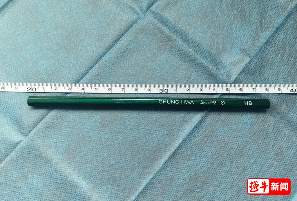 手术过程很顺利。由于异物下端距离肛门较近,医生在肠镜下使用圈套器成功套住铅笔一端,将其随肠镜缓缓取出。术后再次进镜观察发现,铅笔两端因长期滞留摩擦挤压,导致乙状结肠及直肠局部形成溃疡,所幸程度不重,经后续注意饮食及抗感染治疗即可顺利康复。