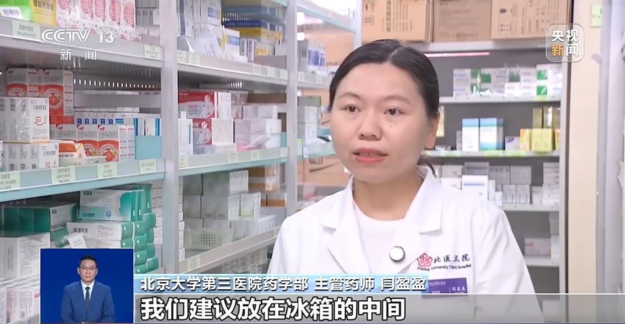 北京大学第三医院药学部 主管药师 闫盈盈:生物制剂这类药物实际上它其实又怕冷又怕热,那怕冷的意思是说它不能冷冻,它不能结冰;怕热的意思它是高温会让它失活,所以这类药物也需要在2~8℃冷藏来保存。在保存的时候需要注意,既不能紧贴冰箱的内壁,又不能放在冰箱门附近来保存,因为这两个部分实际上温度是非常不恒定的,我们建议放在冰箱的中间。