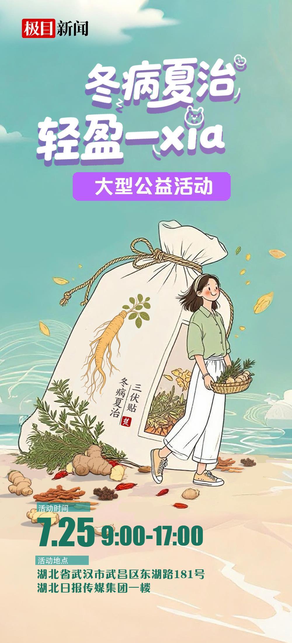 三伏天将至,又是冬病夏治的好时候,不少市民计划着赴一场“三伏天”中医养生局。7月25日,极目新闻将举办“冬病夏治 轻盈一xia”大型公益活动,中医专家义诊、三伏贴敷贴、体重管理咨询、艾灸体验、祛湿茶试饮、DIY香囊……来自武汉大学中南医院、湖北省中医院、武汉市中医医院等十余家医疗机构的中医专家,将带你在现场解锁这场中医养生盛宴。