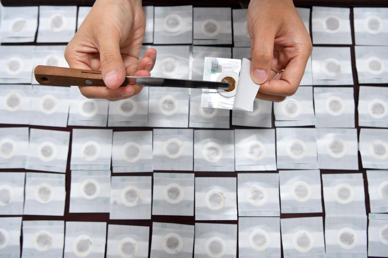 7月20日,在湖北省襄阳市保康县城关镇卫生院,医生在准备“三伏贴”。 新华社发(杨韬 摄)