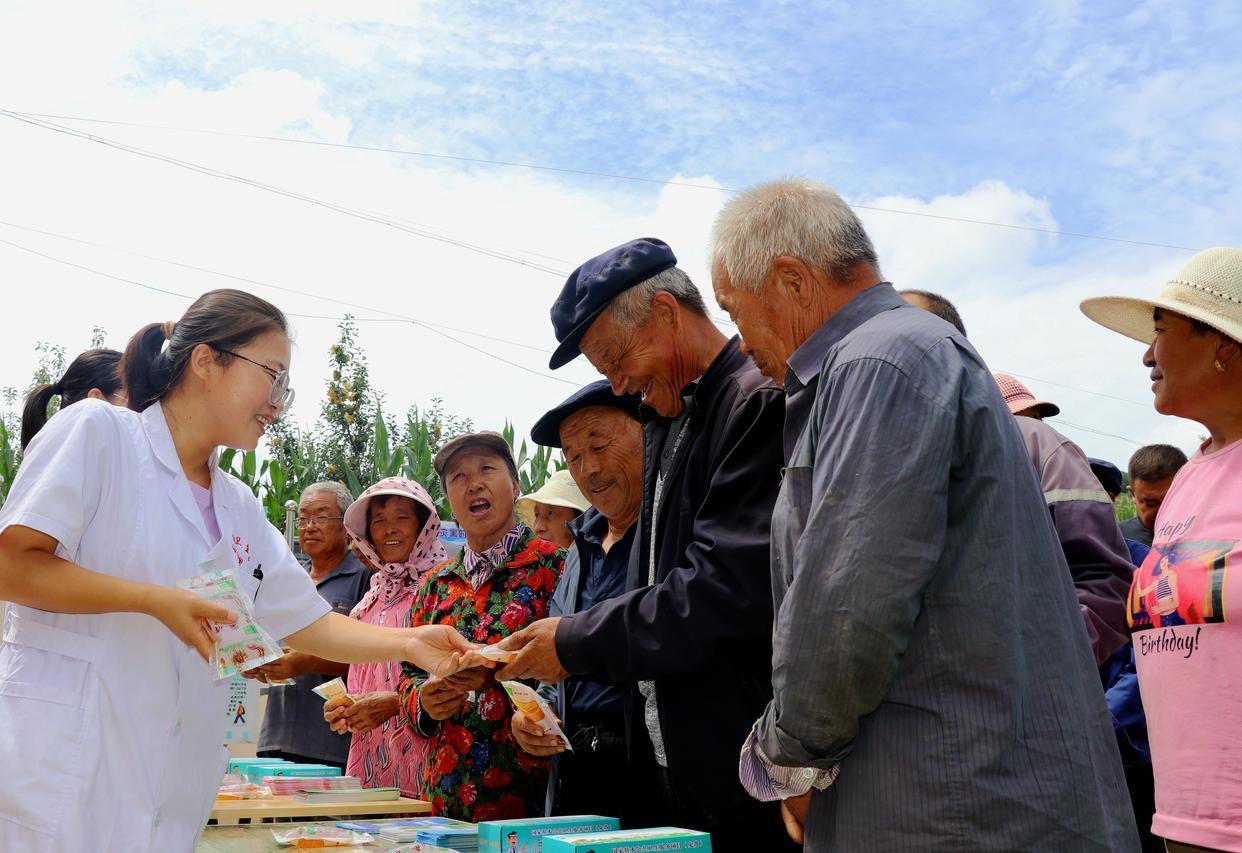 7月20日,在甘肃省平凉市静宁县司桥乡南坡村,医务人员给群众讲解健康防暑知识并免费发放中草药剂。新华社发(王毅 摄)
