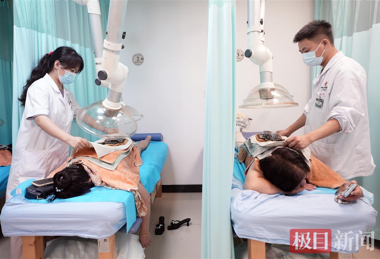当天早上7时许,医院针灸科诊室内就传出了艾灸香。湖北省中医院针灸科副主任医师张婷介绍:“我们7月1号就开放预约了,凤凰门诊早就约满,今天花园山院区光三伏灸就约了60多个,一天下来至少要做70多个。”