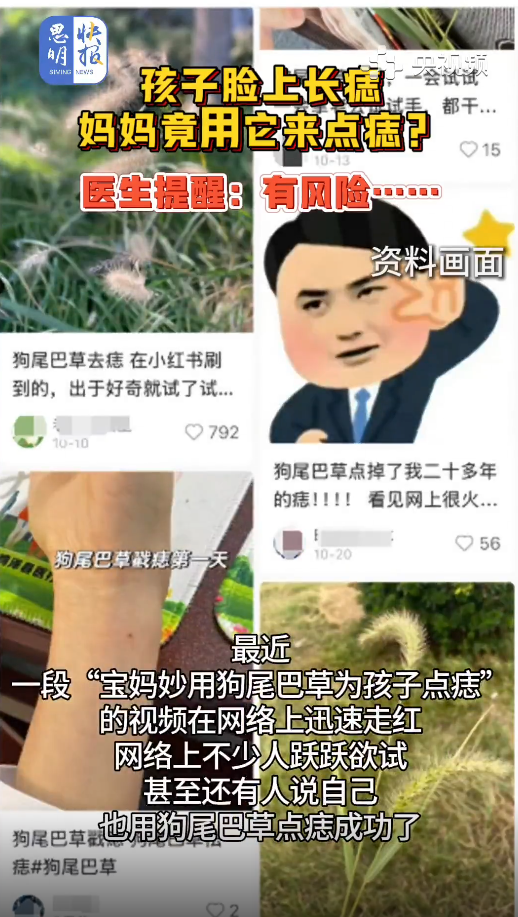 狗尾巴草真的能点痣吗?央视新闻此前已辟谣。