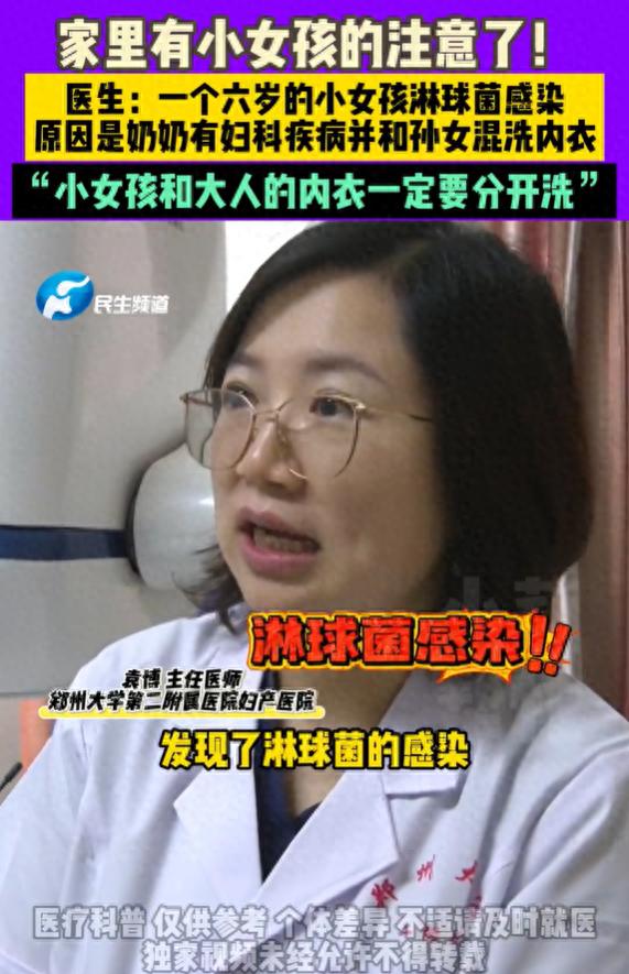 家里有小女孩的注意了!近日,郑州大学第二附属医院妇产科,接诊了一位6岁小患者,因有妇科病症状,查出感染淋球菌,医生追问病史发现她和奶奶同吃住,老人会将自己和孩子内衣混洗,而大人同样有妇科阴道炎症。