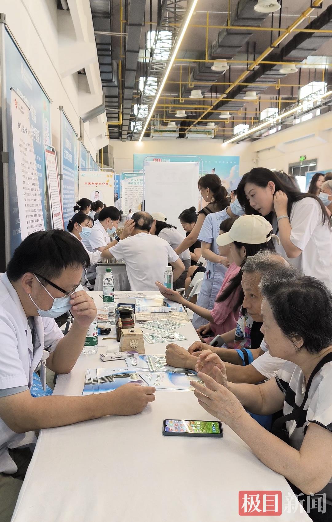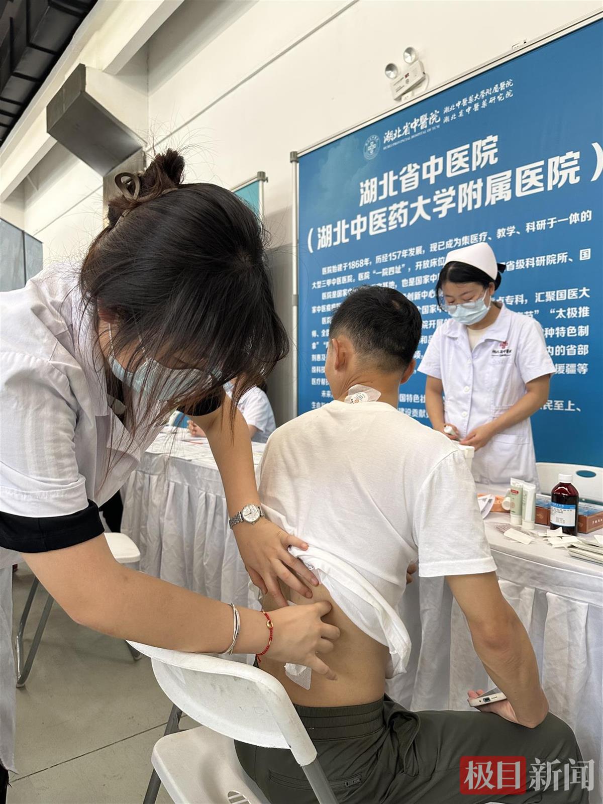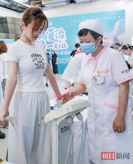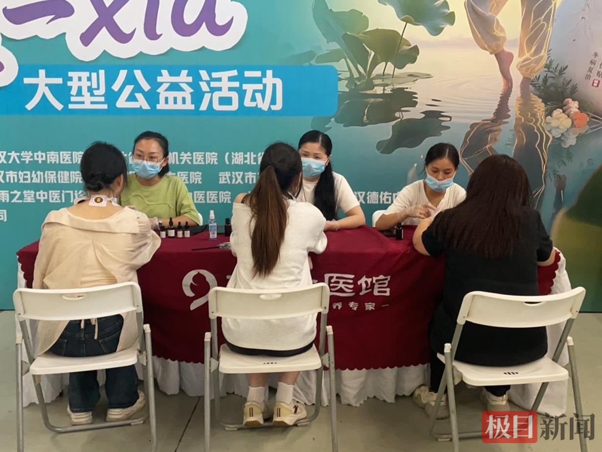 中医专家义诊、三伏贴敷贴、体重管理咨询、艾灸体验、祛湿茶试饮……7月25日,由极目新闻举办的“冬病夏治 轻盈一xia”大型公益活动,在武汉市武昌区东湖路181号楚天181文化产业园181秀场/看见展演火爆进行,吸引了近500名市民火爆参与。来自湖北省中医院、武汉市中医医院、武汉大学中南医院等十余家医疗机构的中医专家,带广大市民在现场解锁这场中医养生盛宴。