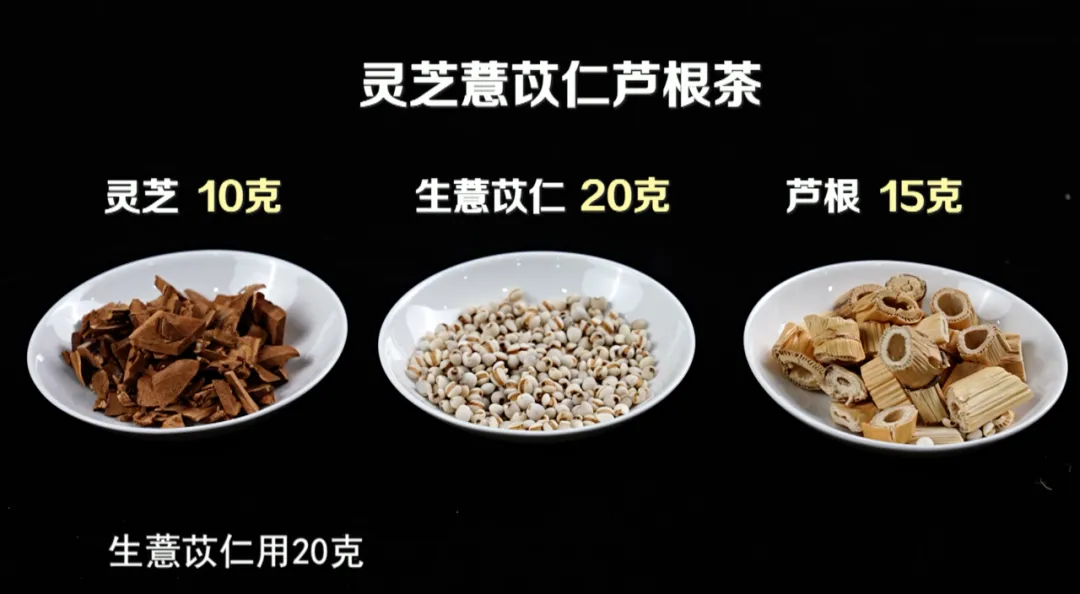 组成:灵芝10g、生薏苡仁20g、芦根15g。