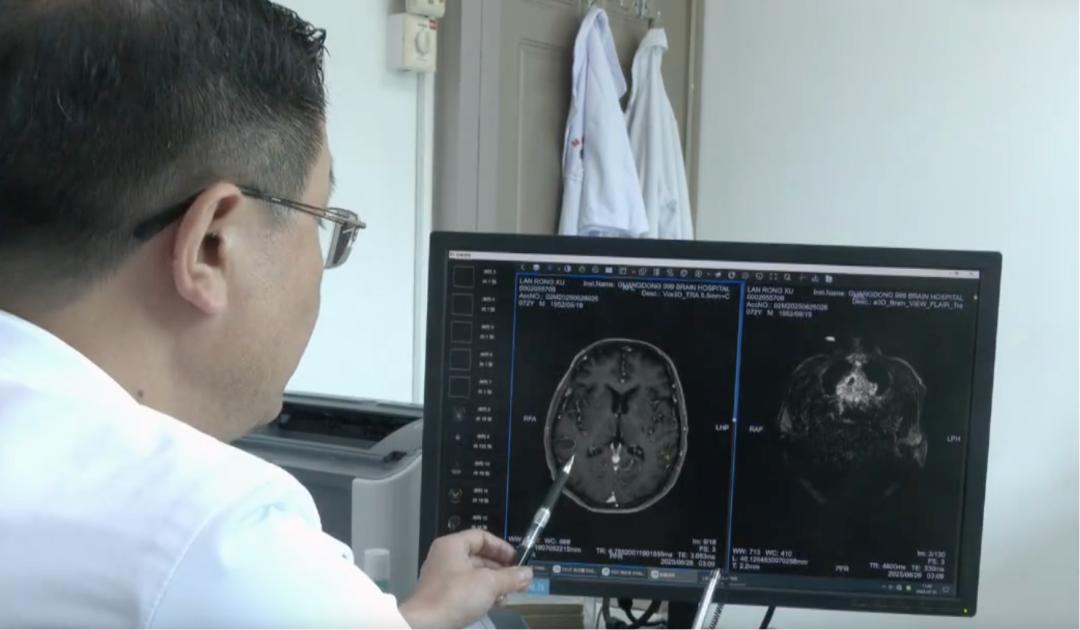 医生解释说:“正常的大脑,血脉屏障是完整的,造影剂没办法通过。但当脑子出现炎症,血脑屏障的通透性就会增加,白色的造影剂就会渗入脑子,这就提示我们脑子有炎症表现。”正是这种猪链球菌脑膜炎,影响了明叔大脑的听力区。