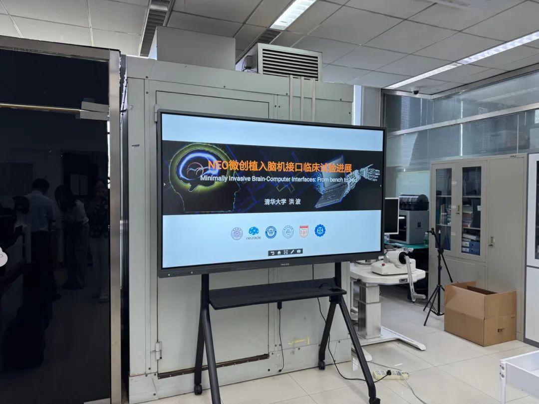 从去年11月在华山医院植入脑机接口,9个月来,小董每天坚持脑机接口训练,不仅做到了徒手喝水吃饭,甚至可以依靠支具稳定站立。8月1日,央视网《锋面》记者来到清华大学医学科学楼,在2楼的展示屏上,看到了正在播放的小董的案例视频。