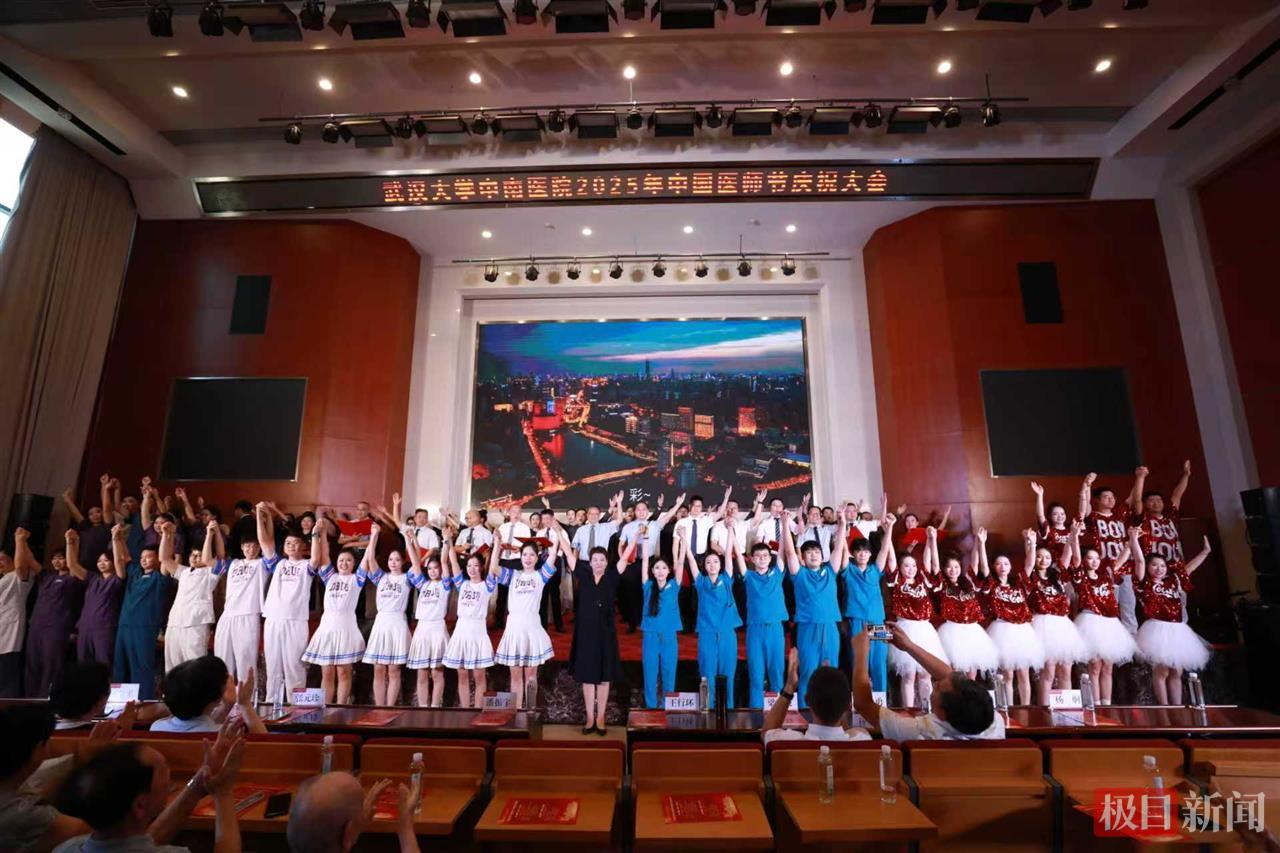 大会文艺演出环节亮点纷呈。情景剧《生命之诺》生动演绎了几代中南医院医者的仁心仁术;医生伉俪的深情对唱,诉说着医务工作者舍小家顾大家的无私奉献;科普主题舞蹈串烧巧妙融合医学知识与艺术表现,赢得阵阵掌声。大会尾声,14位老中青三代医者登台领唱《强国一代有我在》。激昂的旋律与嘹亮的歌声,共同表达了强国一代医者的使命与担当,全场齐声合唱将现场气氛推向最高潮。庆祝大会在充满希望与力量的氛围中圆满落幕。