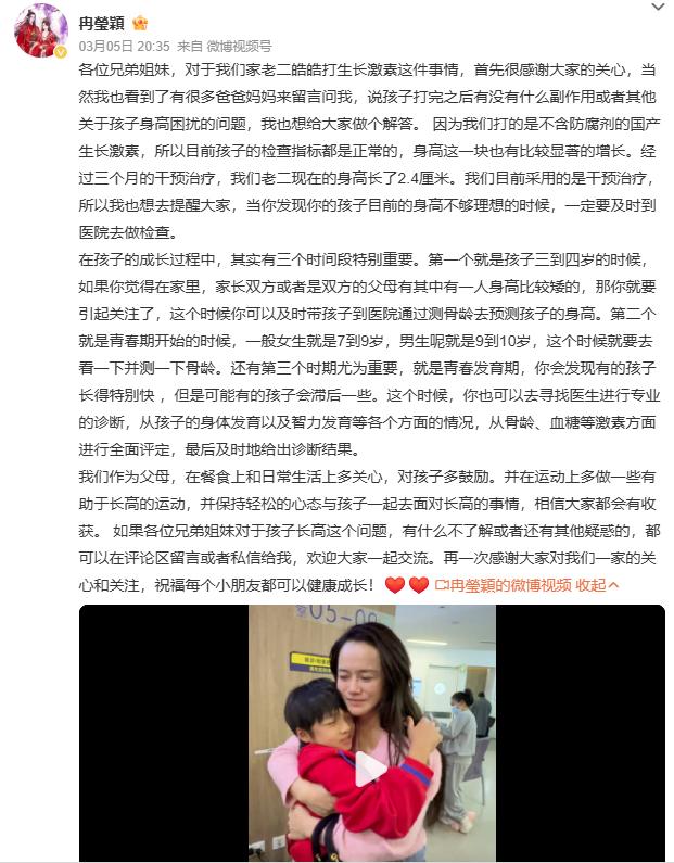 家长为孩子的身高、体重真是操碎了心。此前,冉莹颖也晒出过因儿子身高不达标,带孩子去打生长因子的历程。