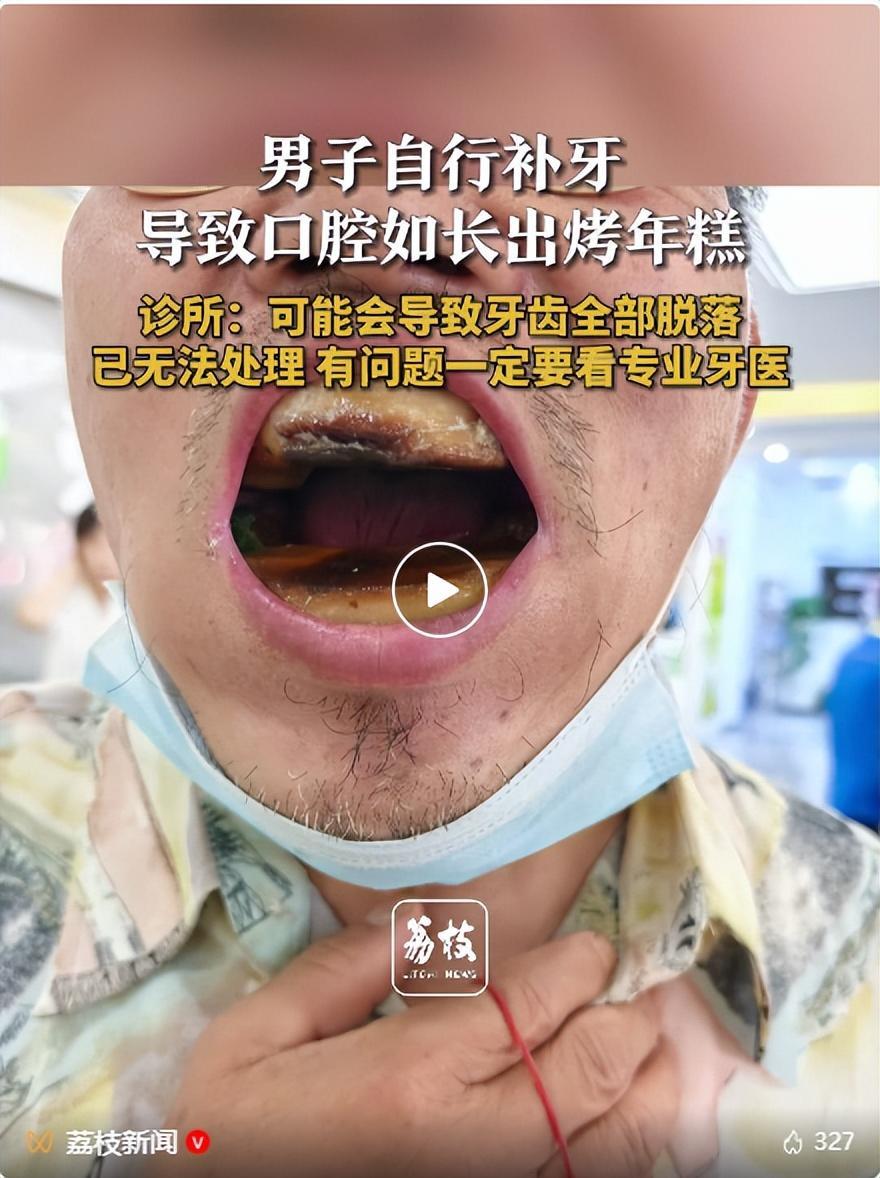 男子买5元树脂自行补牙,口腔如长出“烤年糕”,诊所回应:无法处理,可能会导致牙齿全部脱落