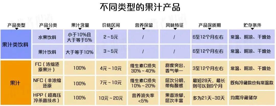 FC全称为From Concentrate,意为“浓缩还原果汁”,FC果汁是从水果浓缩液中还原出来的。