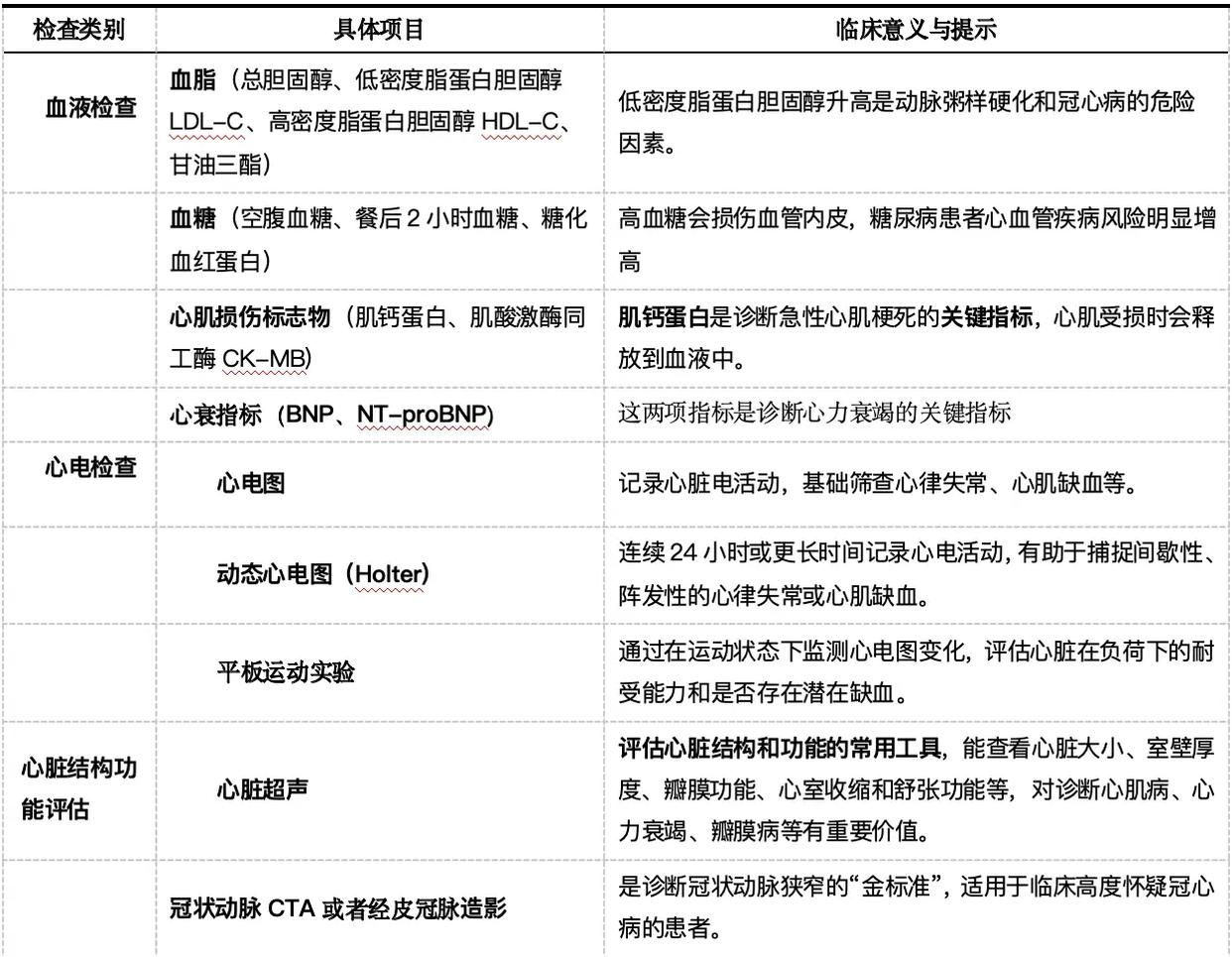 定期体检和了解关键医学指标是评估心脏健康的重要方式。下表列出了一些核心的检查项目及其意义: