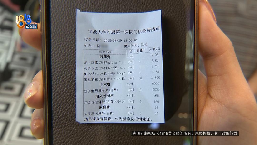 陈女士:医生说了缝美容针,他们这边就说美容针不在他们报销范围,只能缝普通的。医生都说了,脸上缝普通的比海盗还要丑,那是不可能的。