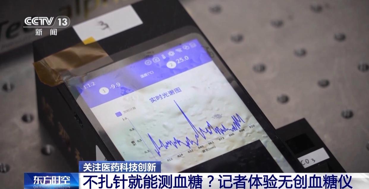 总台央视记者 郑怡哲:除了大的设备以外,这家科创企业还在努力将它小型化和便携化,比如说像旁边的正在进行实时光谱图分析的一个设备,就是一个手持版的,同样也是医疗级别的无创血糖检测设备。