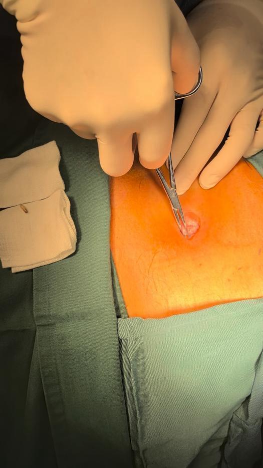 “蝇蛆病,是由蝇类幼虫(蛆)侵入人体组织或腔道所引发的一种寄生虫病。虽然这种病并不常见,但极有可能导致继发感染、组织坏死等严重并发症,威胁患者的生命健康。”长沙市中心医院胃肠外科主任医师侯湘德介绍,为确保彻底清创,防止残留,胃肠外科侯湘德、陈志豪等医疗团队当即为老人实施了急诊手术。在局部麻醉下,医生凭借精细操作,使用专业器械将脐窝内的蛆虫逐一完整取出,并对脐部进行了彻底消毒、冲洗和清创。手术过程顺利,术后王爷爷的疼痛感即刻显著缓解,目前身体各项指征趋于稳定。
