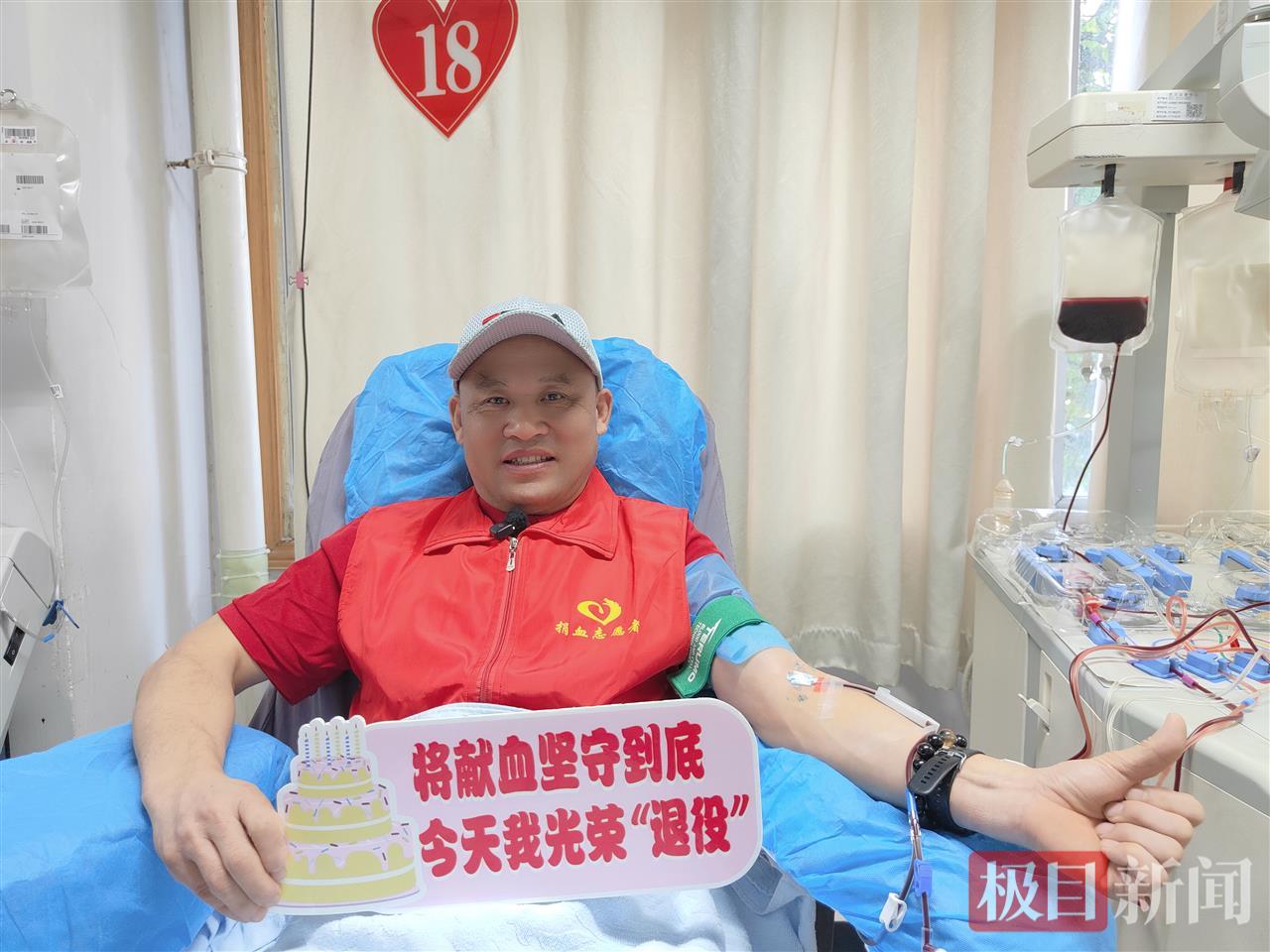 “秦师傅,生日快乐,您是我们的榜样。”武汉市无偿献血志愿者协会副会长汪阳雄、志愿者姚芳、杜豫川、程迎春等“老战友”纷纷送上祝福。“我们也要和您一样,献血到60岁。”恰好赶上献血间隔期的姚芳、杜豫川还和秦基斌一起坐上了采血椅,以“热血同行”致敬“热血挚友”。