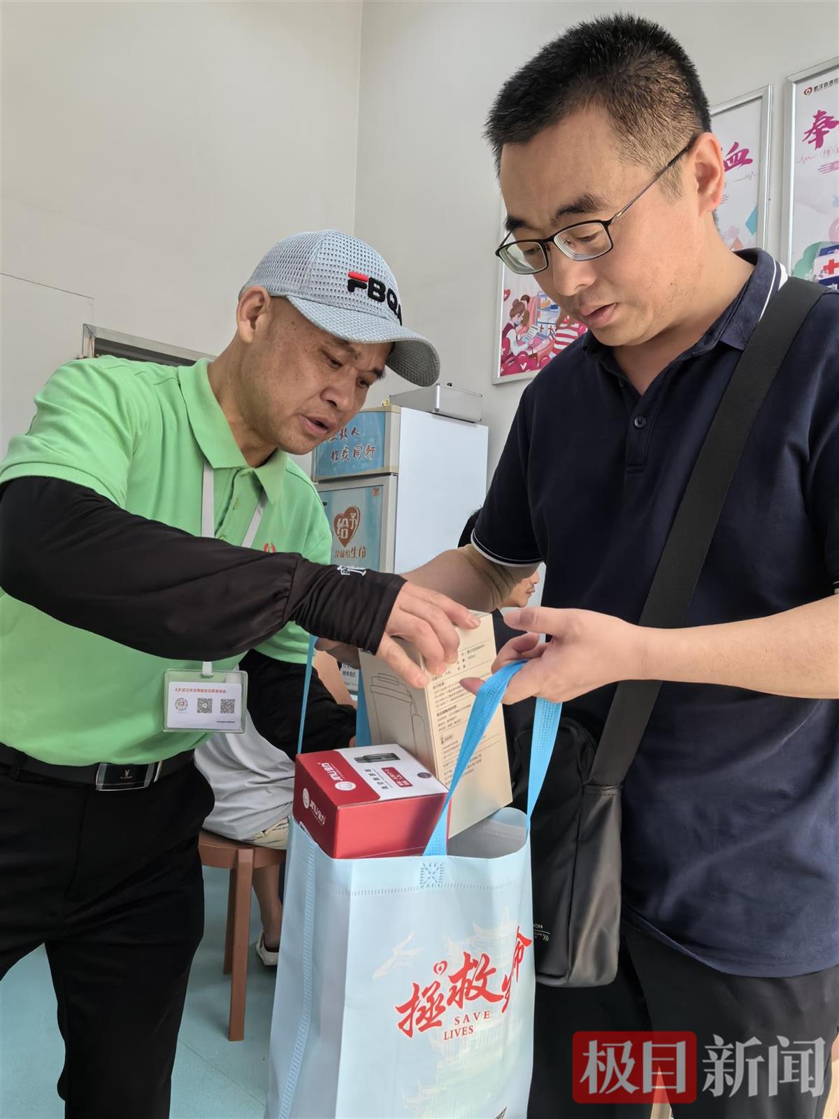 秦基斌正在做志愿服务(武汉市无偿献血志愿者协会提供)
