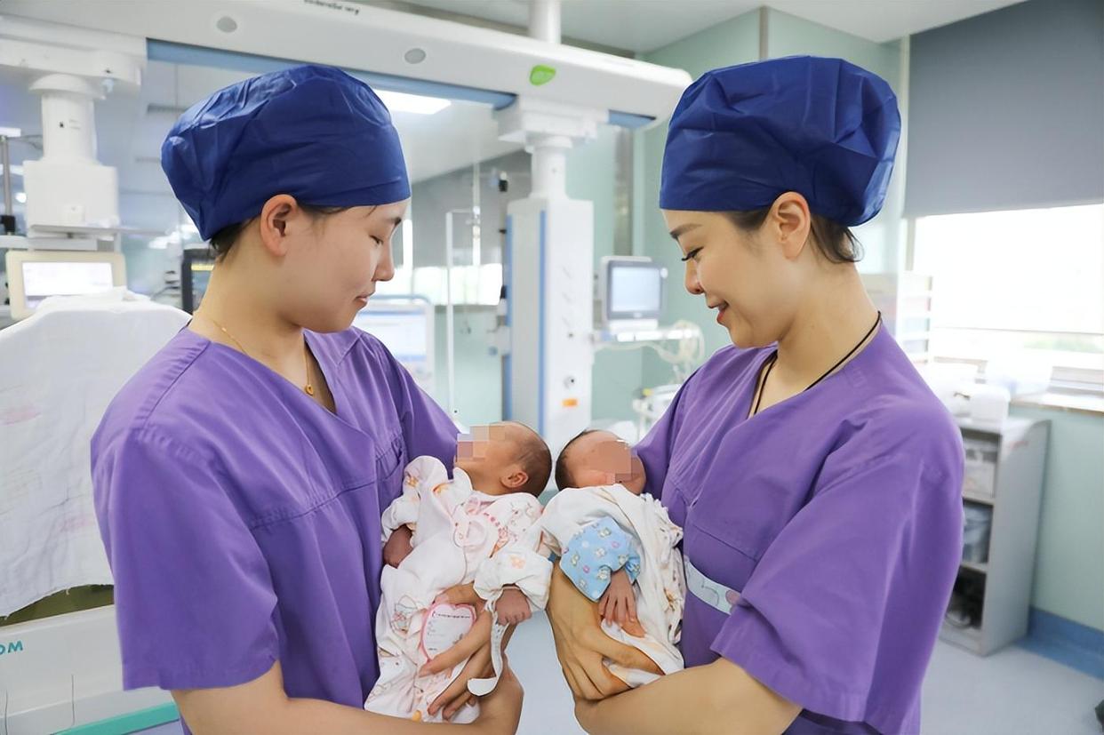 ▲新生儿科护士抱着这对龙凤胎