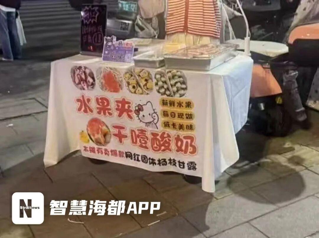 14日晚,记者来到一家网友推荐的夜市,看到有部分摊位在醒目位置贴出“固体杨枝甘露”的招牌,前来购买的市民络绎不绝,“在网上刷到很多人推荐,特地过来打卡。”市民小金拿着一份固体杨枝甘露告诉记者,身边有不少朋友都体验过了,自己也来“跟风”。