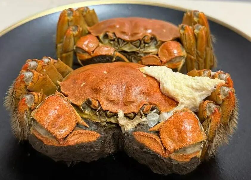 而蟹膏,则是由公蟹的精囊等副性腺及其分泌物组成,煮熟后呈乳白色胶质状,糊嘴粘牙的口感是许多人的最爱。但公蟹的性腺成熟较母蟹更晚,所以也就有了“九雌十雄”、“九月团十月尖”的说法。