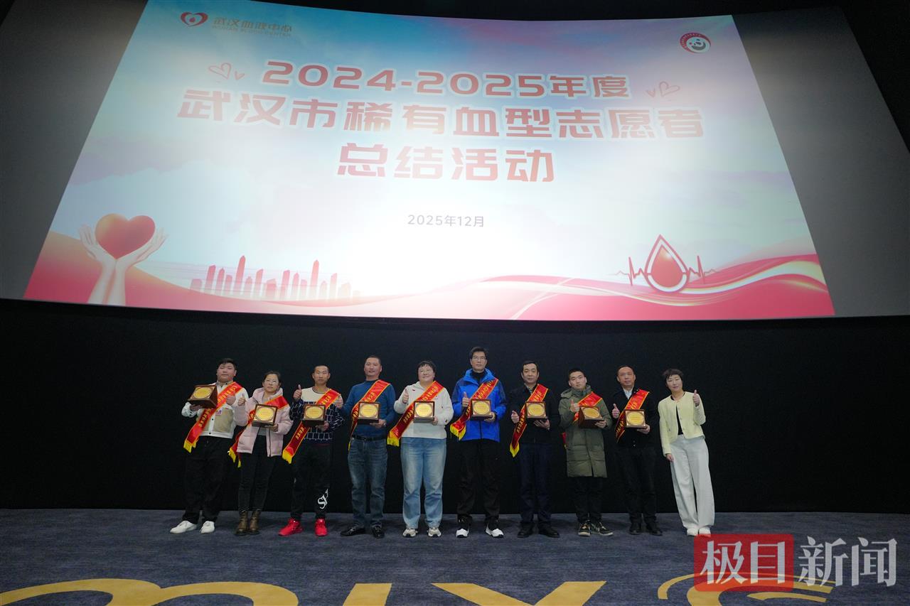 据悉,武汉市稀有血型志愿者之家成立于2002年,是武汉地区Rh阴性血型捐献者自愿组成的互助组织。在当天的总结会上,11位累计献血超过12000毫升、17位累计献血超过8000毫升、84位累计献血超过4000毫升及148位累计献血超过2000毫升的“熊猫大侠”获得通报表扬。