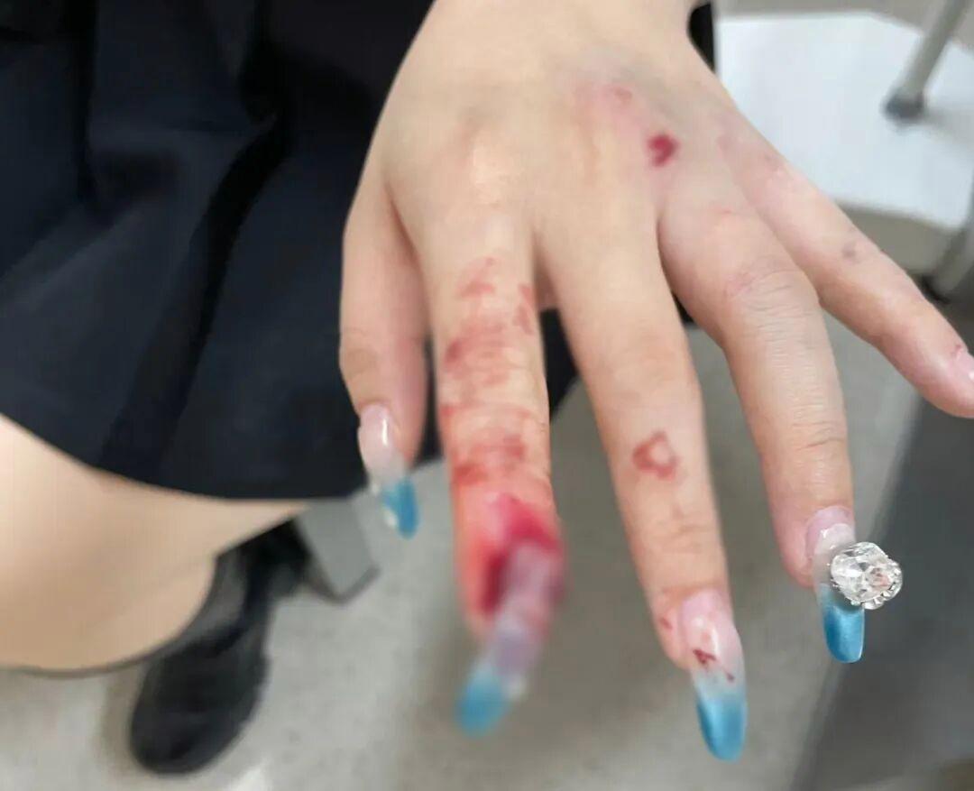 王女士手指受伤严重。图源:杭州市临平区中西医结合医院