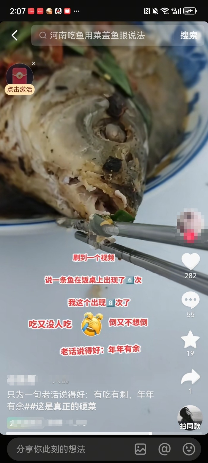 2月25日,有网民在社交媒体上发文称,刷到一个视频,一条鱼在饭桌上出现了6次。然后该网民发布了一条鱼的图片称,“我这个已经出现8次了。”……那么,像这样在饭桌上反复出现的鱼,最后还能吃吗?2月25日,大皖新闻记者联系上淮北市第一人民医院消化科主任医师王文件。