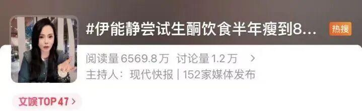 2月25日,#伊能静生酮饮食半年瘦到86斤#的词条冲上热搜,艺人伊能静说自己靠生酮饮食,半年把体重减到86斤,可脸却垮了。