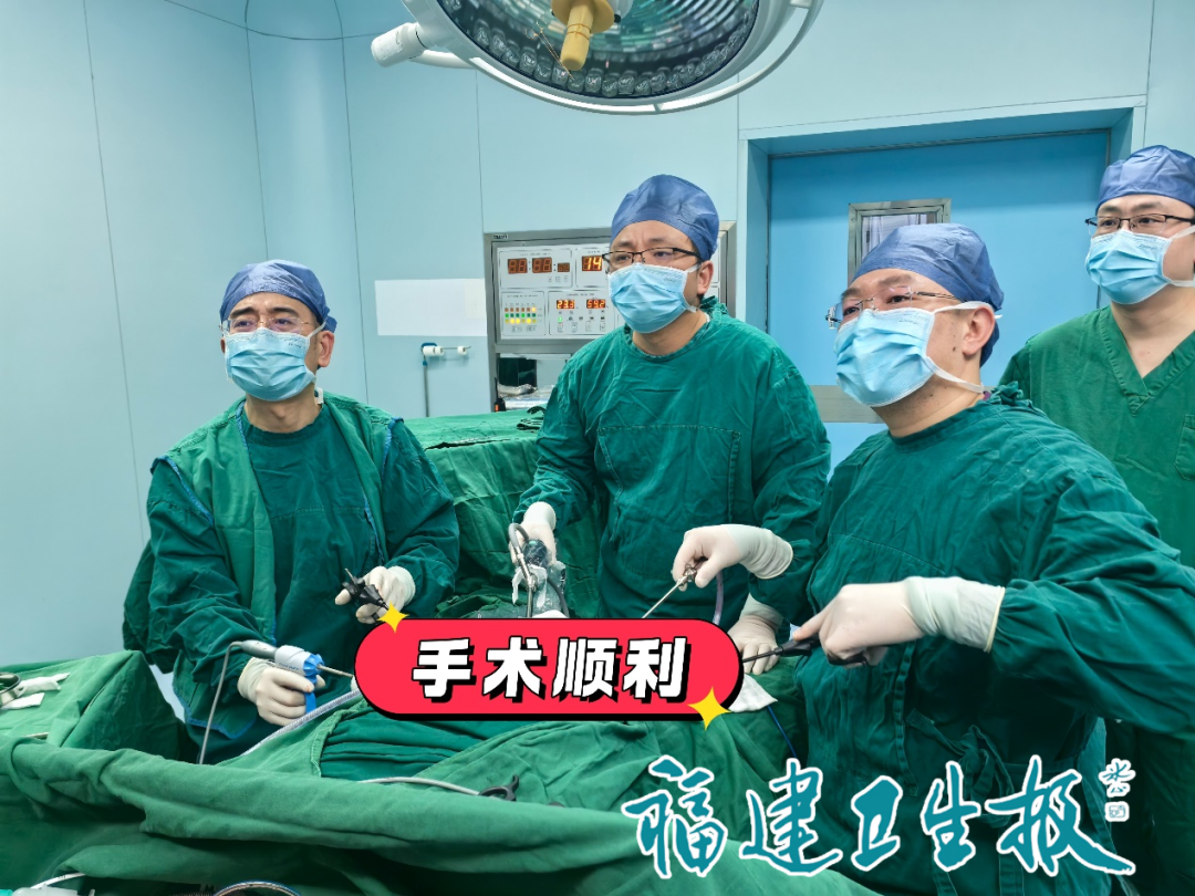 ▲李平教授(左一)团队为患者施行精准微创手术