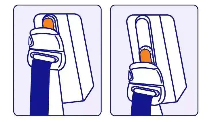 2、坐在车座上,一手拉出安全带,另一只手握住卡扣处,将卡扣片与卡扣处卡紧,以确保安全带牢牢地拴住身体。