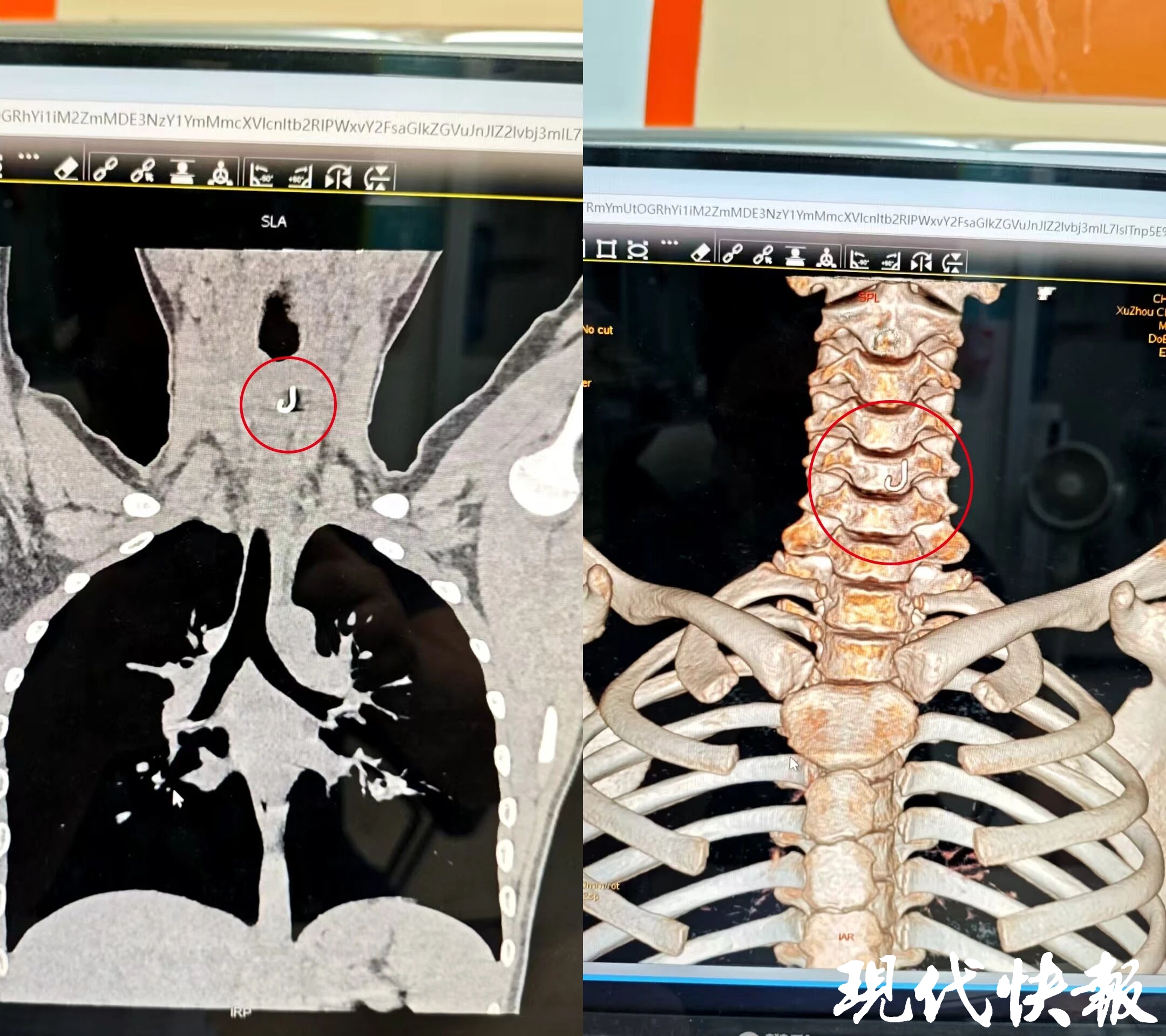 意识到情况不妙,家人立即带孩子前往当地医院就诊。首诊医院通过CT检查,确认食道内确有鱼钩,但因位置特殊、风险较高,建议转诊至市区大医院。几经辗转,直至深夜11点半,一家人来到徐州市儿童医院。