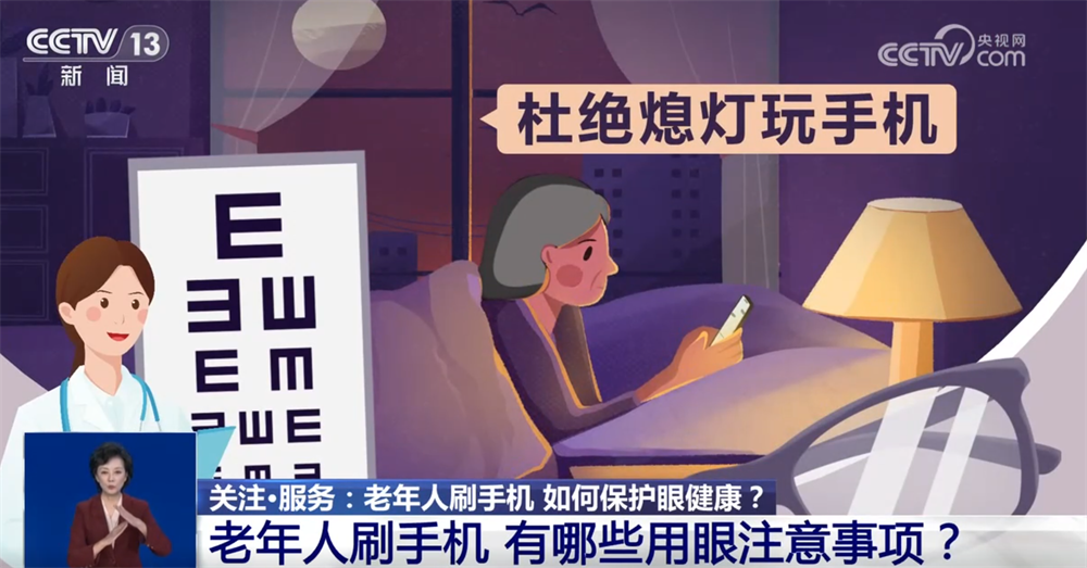 医务人员指出,老年人眼部睫状肌调节能力减弱,长时间近距离用眼,特别是侧躺使用手机,会加速近视的发展。