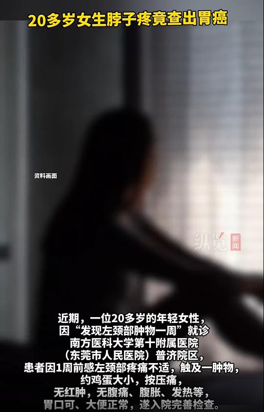近日,纵览新闻记者从广东省东莞市人民医院获悉,近期,一位20多岁的年轻女性,因“发现左颈部肿物一周”在南方医科大学第十附属医院(东莞市人民医院)普济院区就诊,患者1周前感左颈部疼痛不适,触及一肿物,约鸡蛋大小,按压痛,无红肿,无腹痛、腹胀、发热等,胃口可、大便正常,入院完善检查。